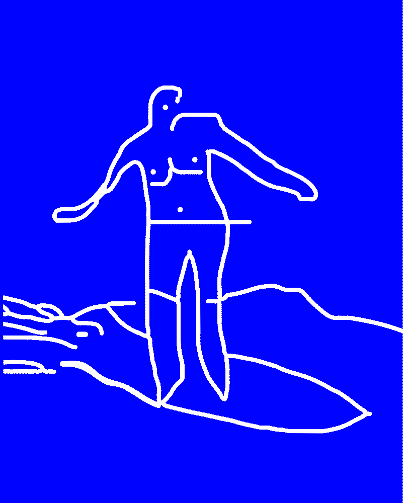 Illustrations made after memorizing the early photograph of a Hawaiian surfer. Drawn using only one finger on a laptop touchpad.
